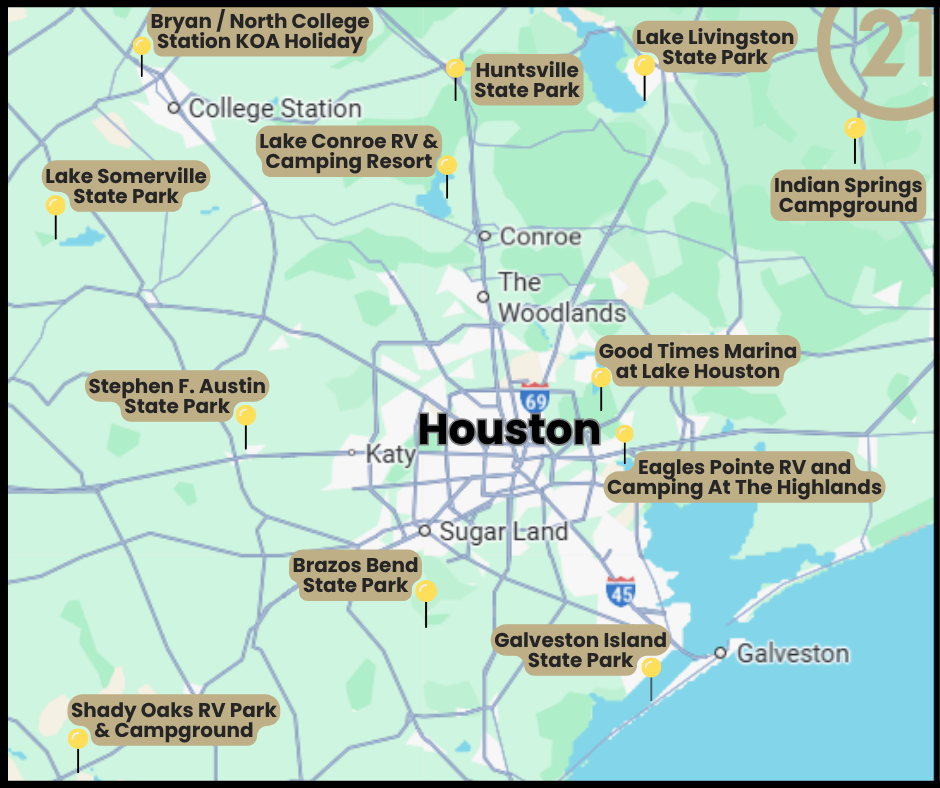 - Book early: Campsites near Houston can fill up fast on weekends and holidays